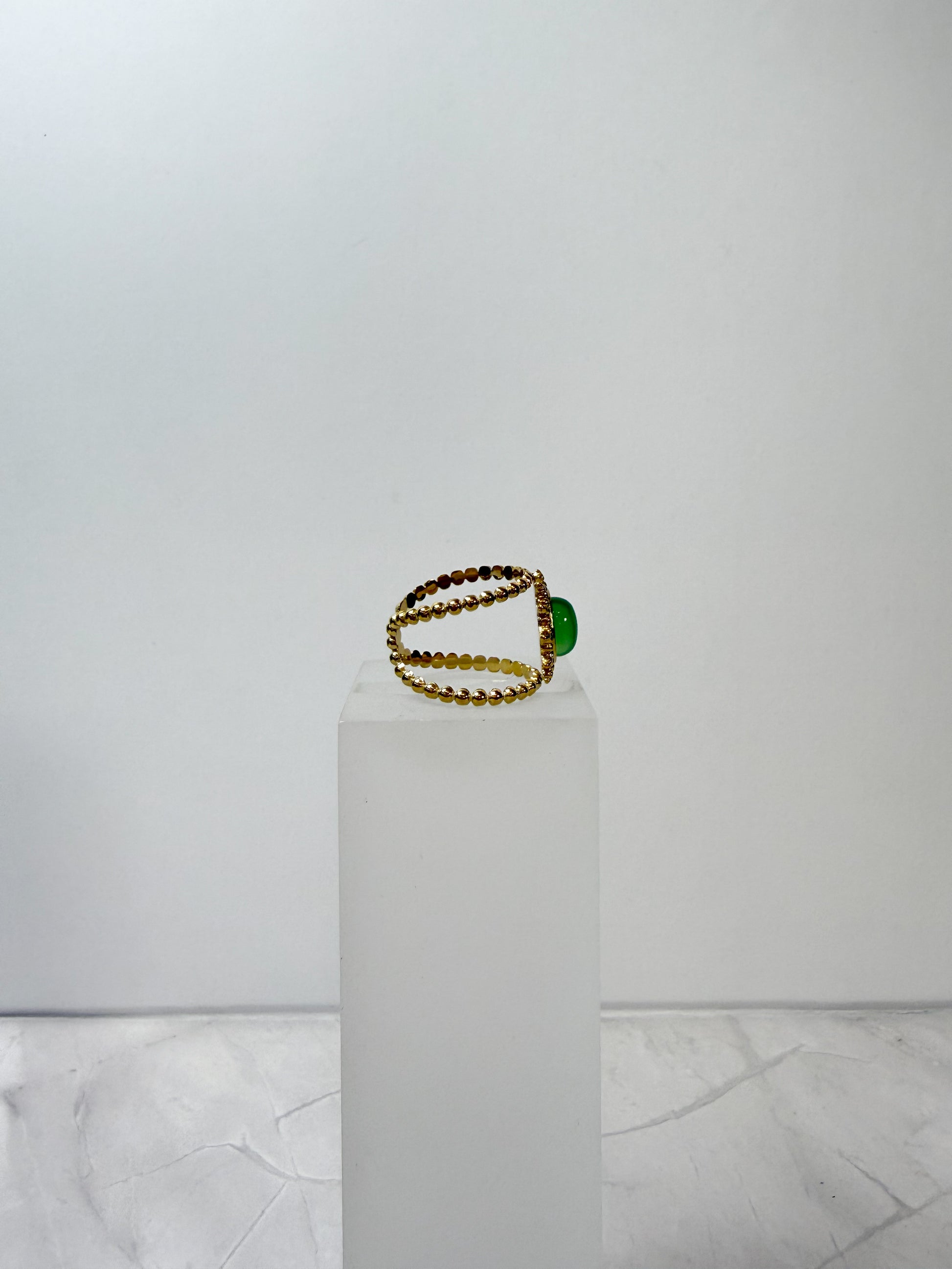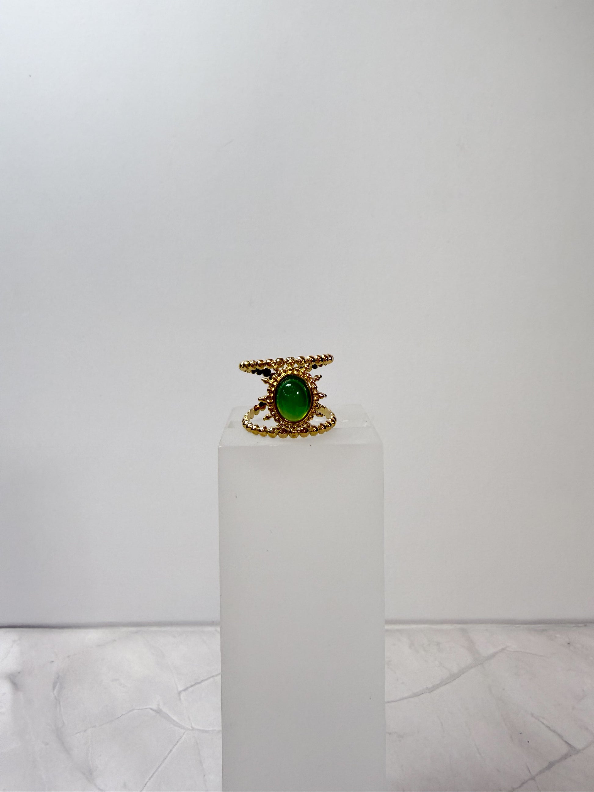 lindo anillo en tono dorado con detalles de piedra en color verde , muy nice para lucir tus manos , ajustable .De acero inoxidable ✨