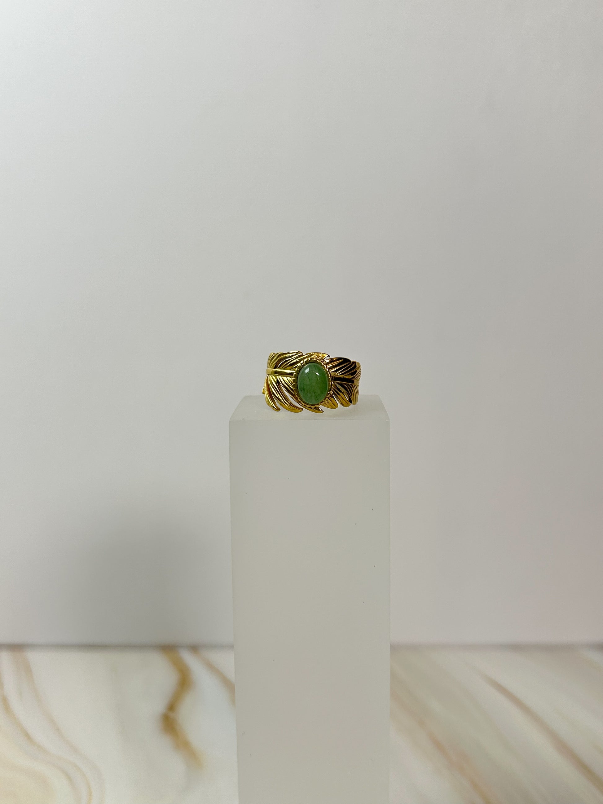 lindo anillo en tono dorado con detalle de piedra color verde en el centro , ajustable .De acero inoxidable ✨