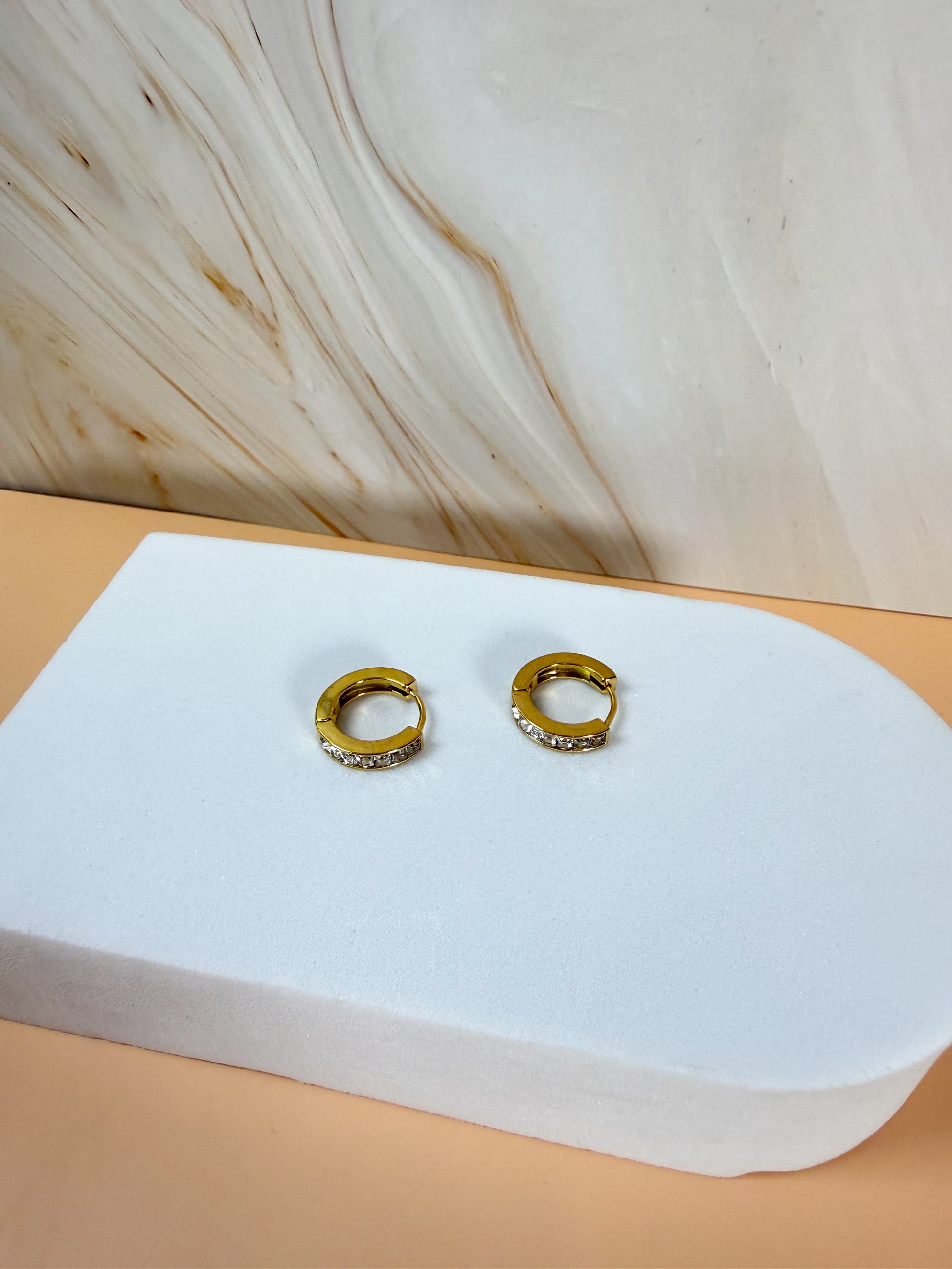 Aretes en tono dorado con detalles de brillitos , lindo y sutil para el día a día ✨ en acero inoxidable