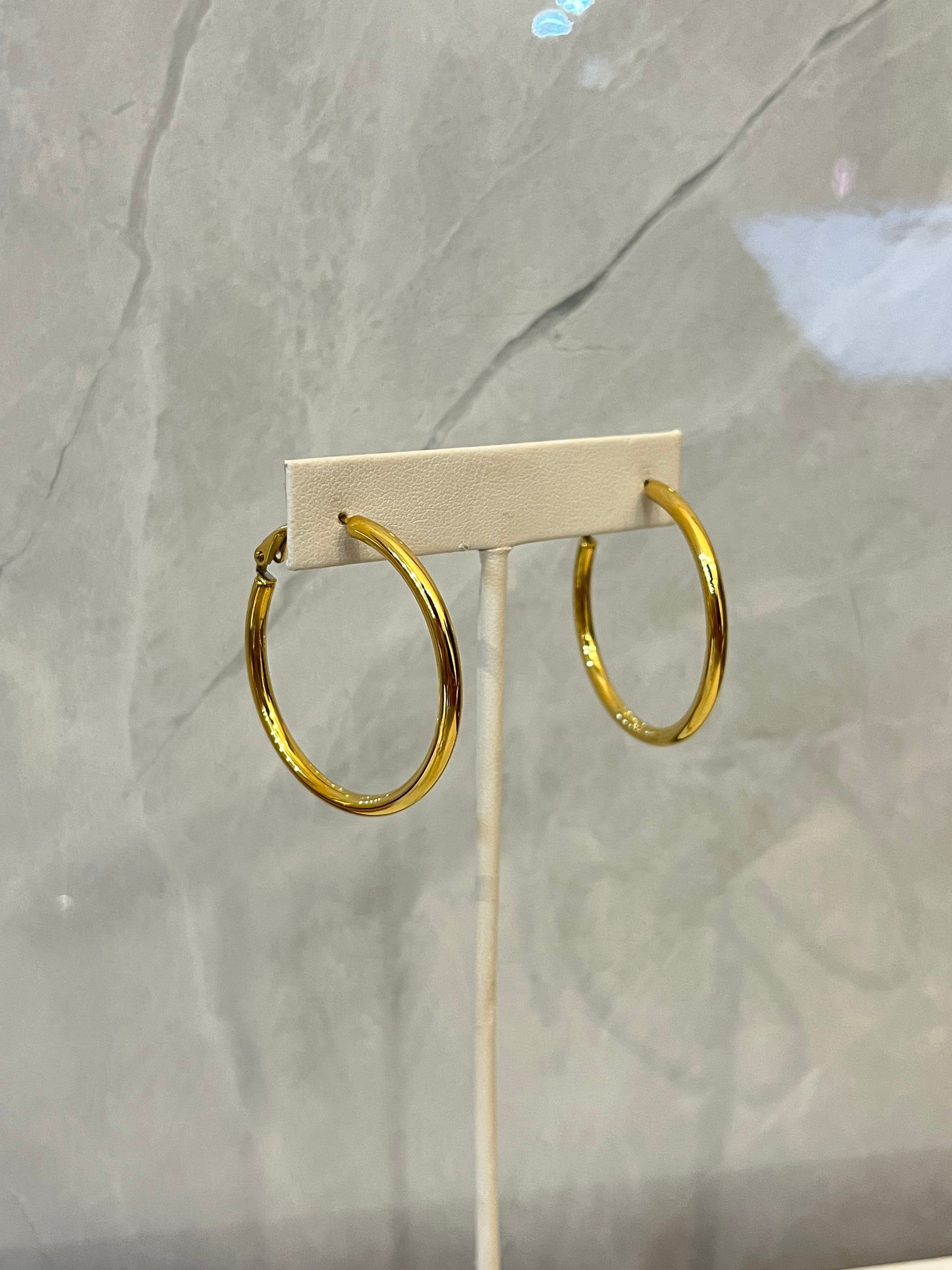 Lindas arracadas en tono dorado algo básico pero que le da un toque sublime a tu look. De acero inoxidable