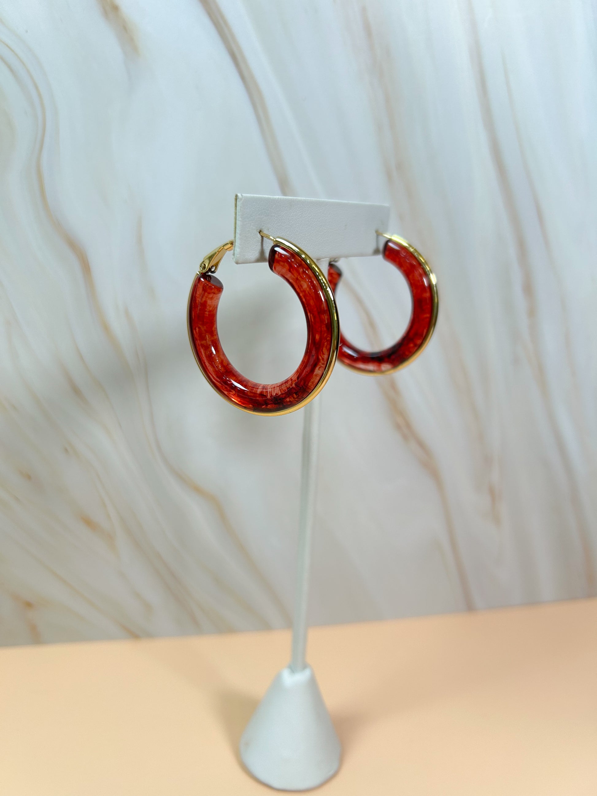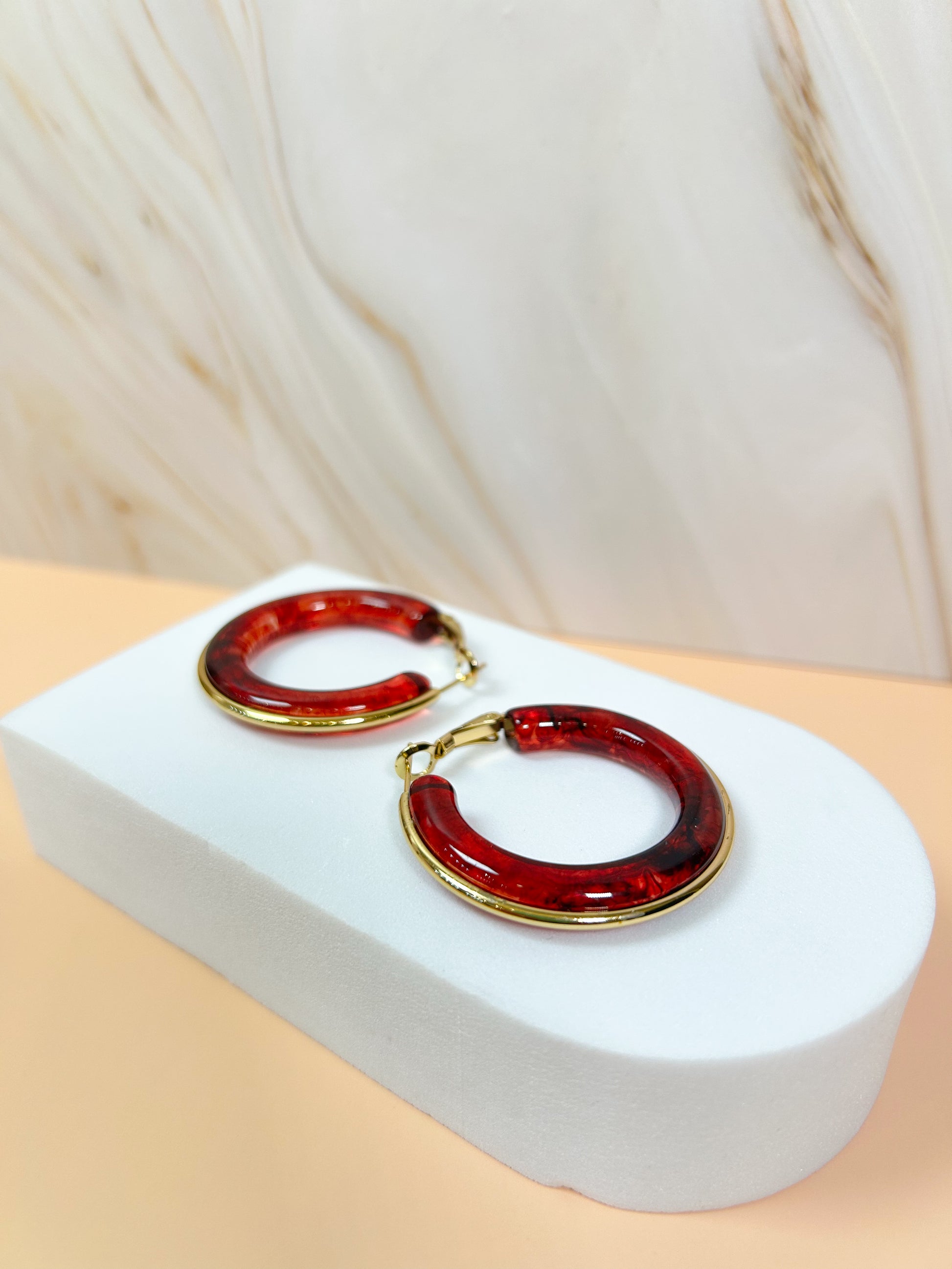 Bonitas arracadas de color rojo marmol , lindo para tus looks lindos 😍✨