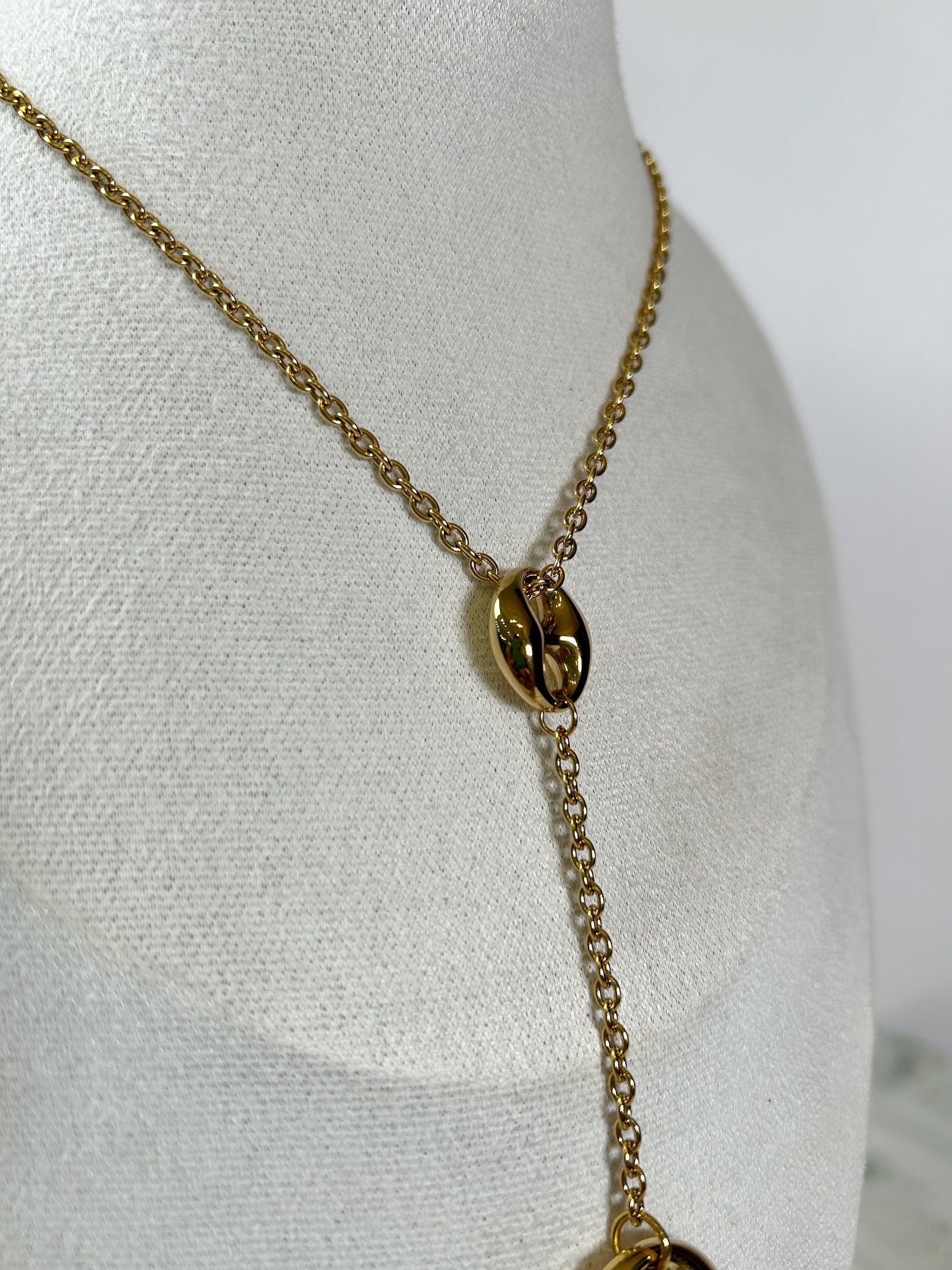 Collar en tono dorado con detalle de corcho dorado, lindo para tus looks ✨💛