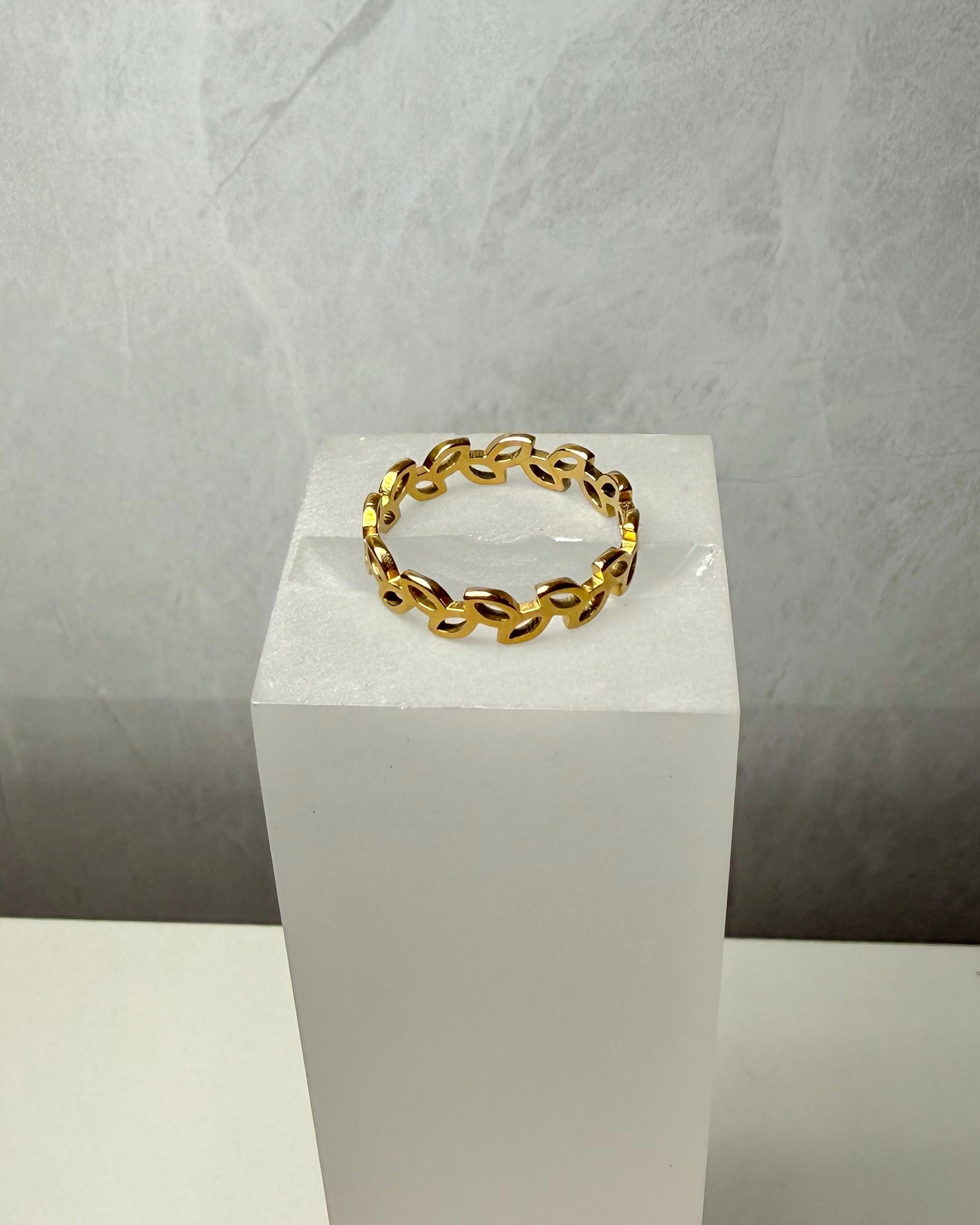 Anillo de tono dorado con detalles de hojitas nice. De acero inoxidable