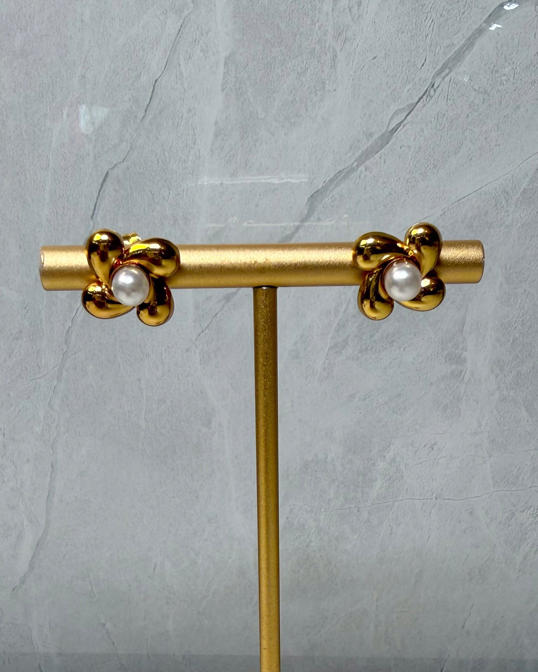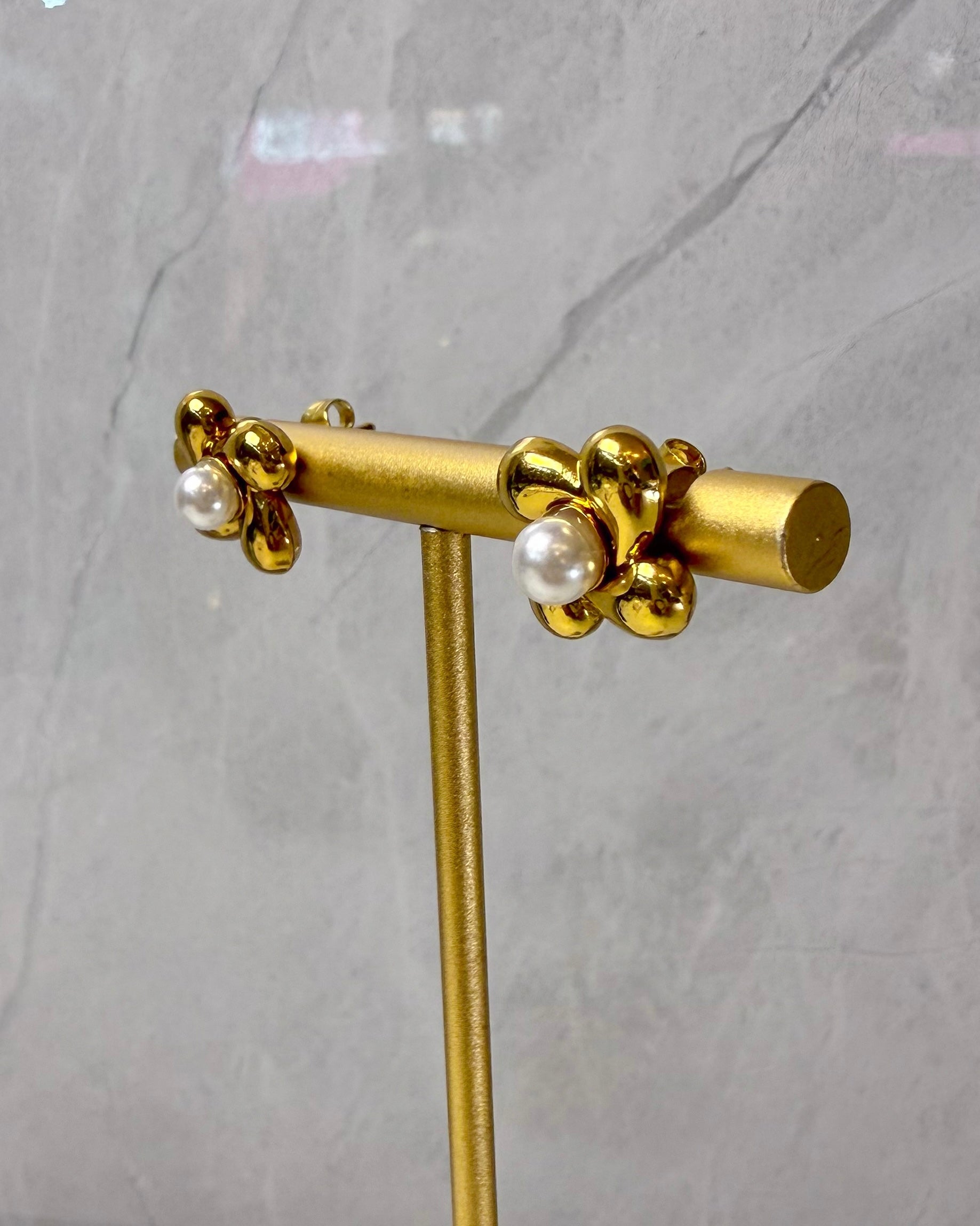 Lindos aretes tono dorados con detalles de perla en medio combinables con todo muy nice . De acero inoxidable✨
