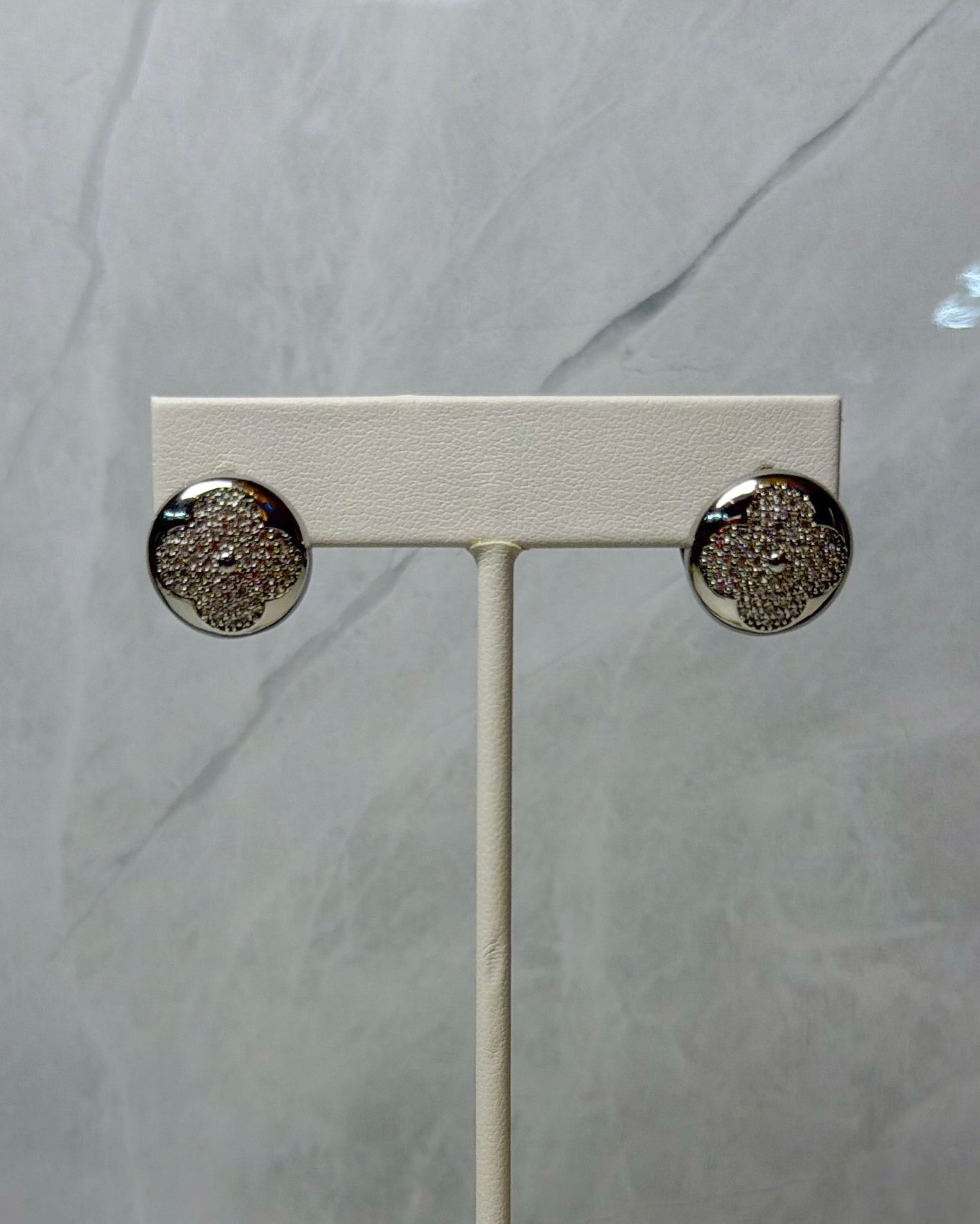 Bellos aretes tono plateados lindos redondos con detalles de cristales causales y lindos . De chapa de oro ✨