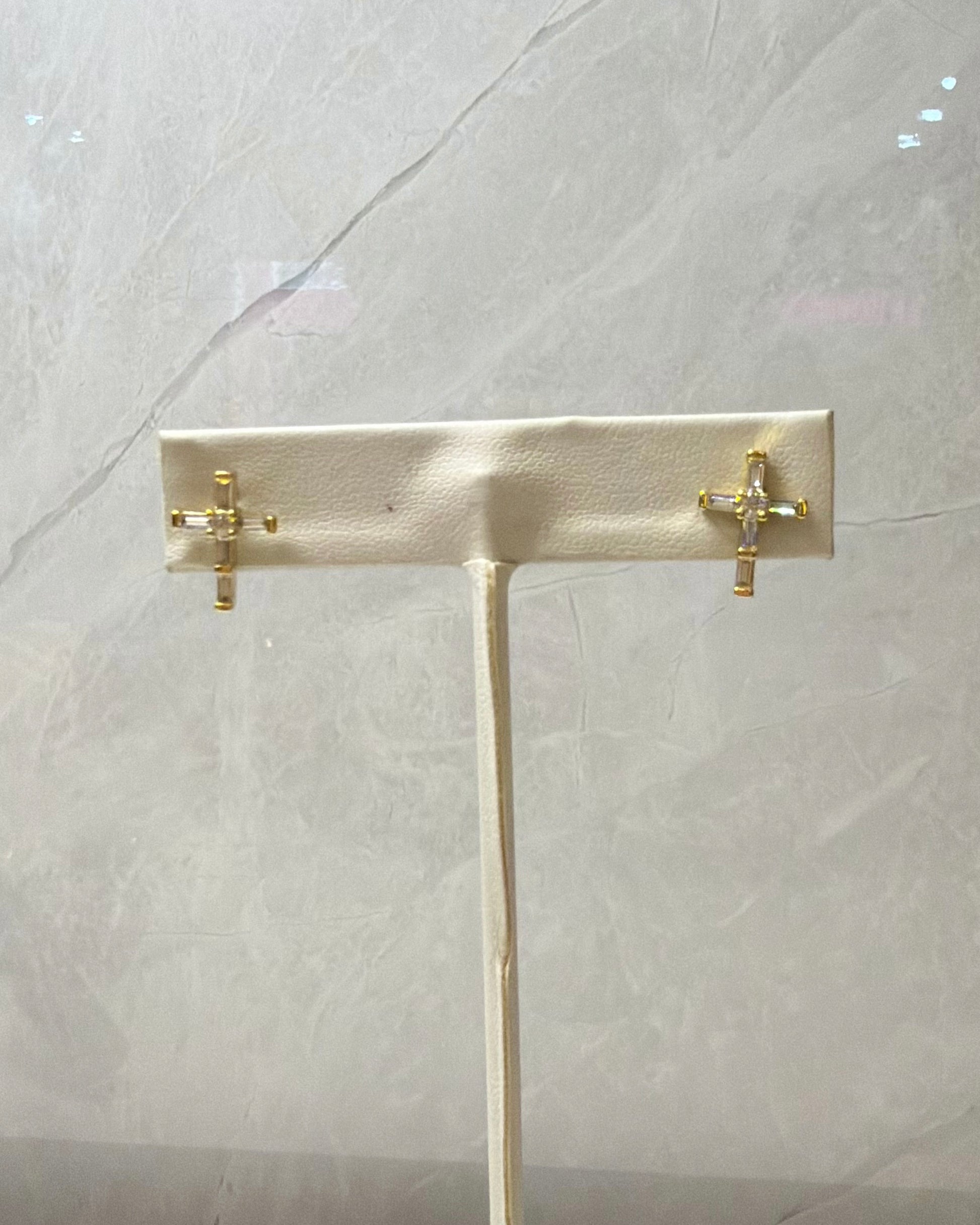lindos aretes de cruz de tono con detalles de cristales lindos para darle una mejor imagen a tu look ideales para cualquier ocasión . De chapa de oro