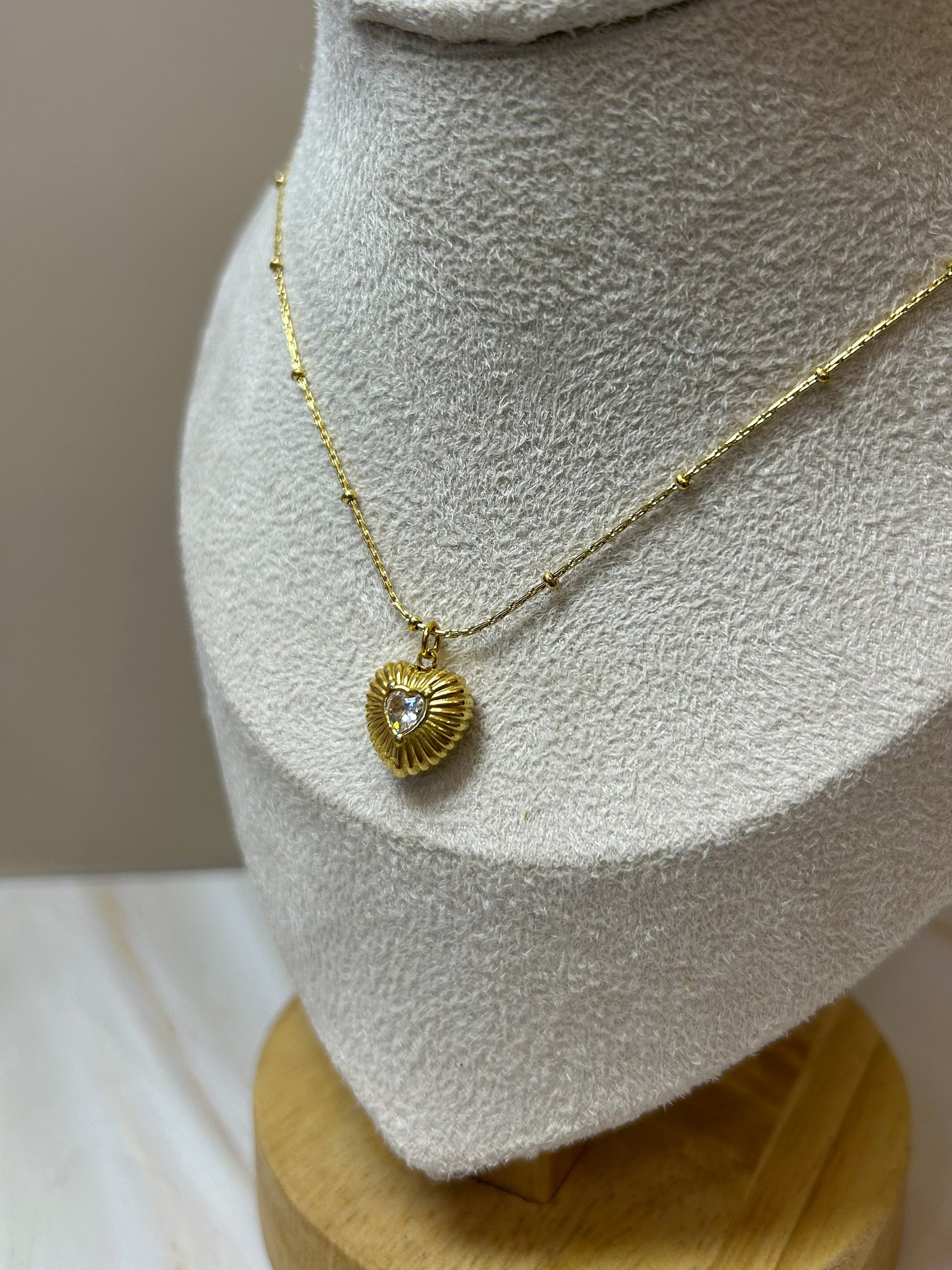 hermoso collar en tono dorado con detalle de corazon con piedra y dorados alrededor lindo para lucir con tus looks. De acero inoxidable ✨