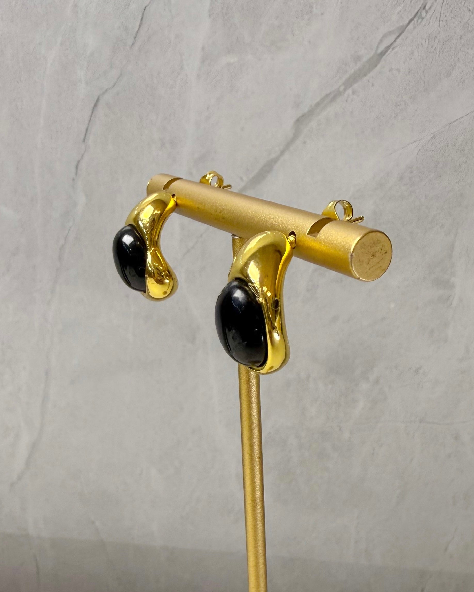 aretes en tono dorado con detalle de piedra color negro lindos y combinables con todo. De acero inoxidable