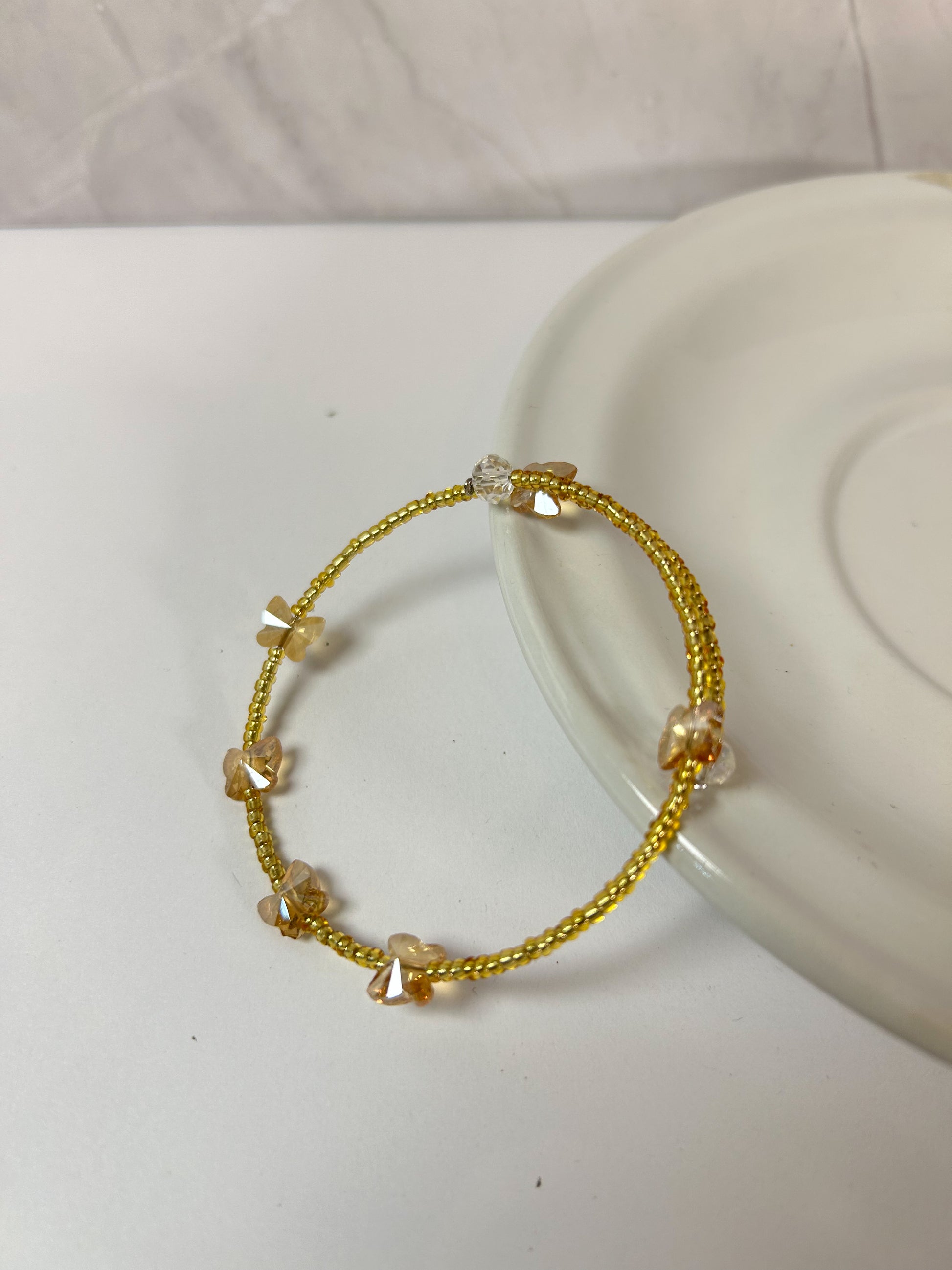 Pulsera en tono dorado con detalles de piedras en forma de mariposa ajustable y sutil para tus looks ✨🦋
