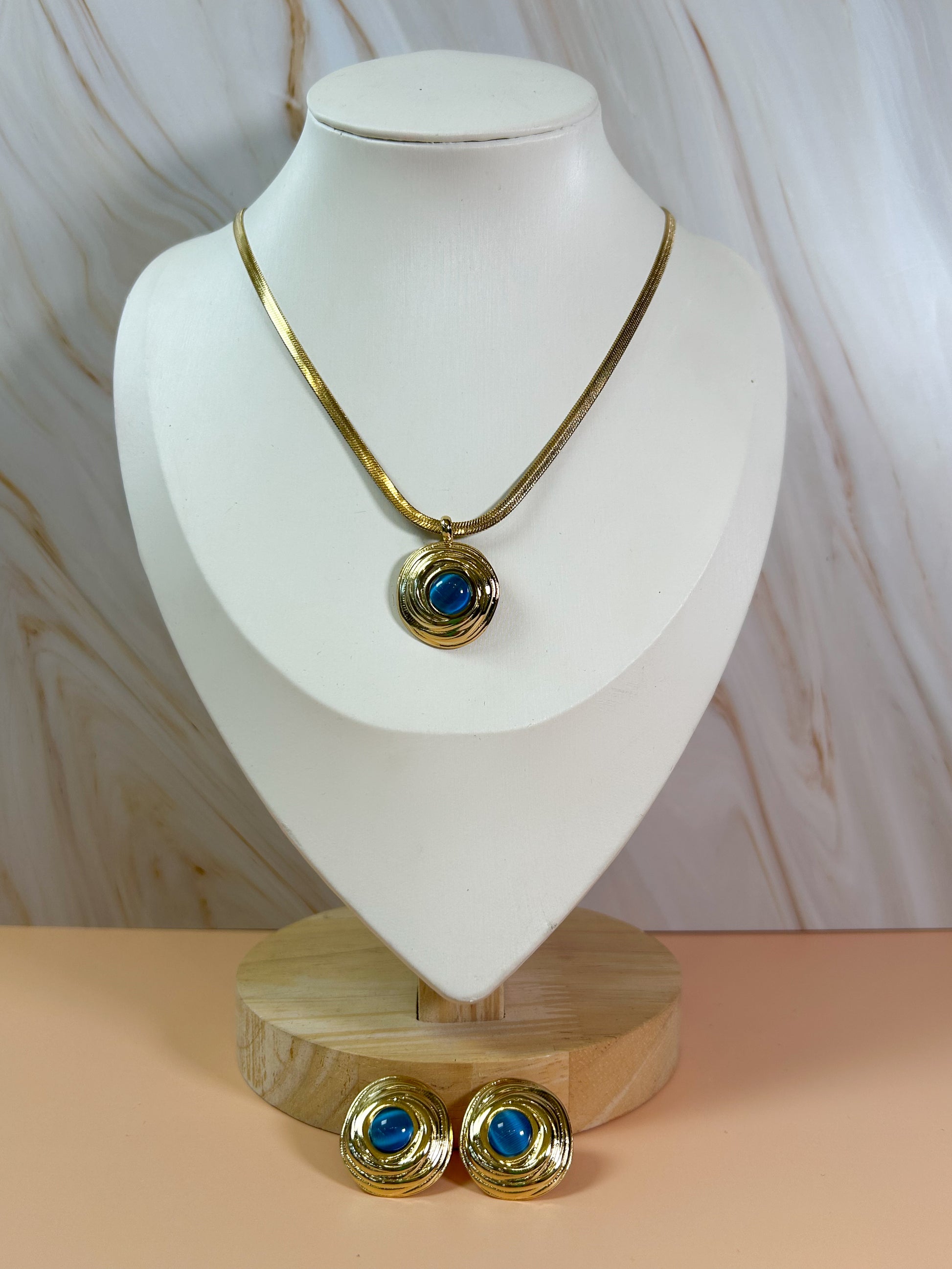 Hermoso set de collar y aretes de piedra azul con dorado para tus looks brillantes y elegantes ✨👌🏻🌊