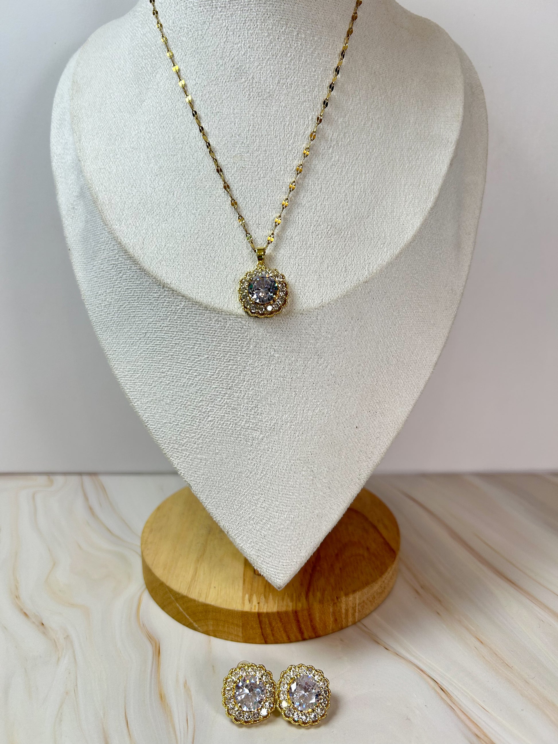 Hermoso set de collar y aretes en tono dorado con detalles de cristales , para tus looks brillantes y elegantes ✨👌🏻