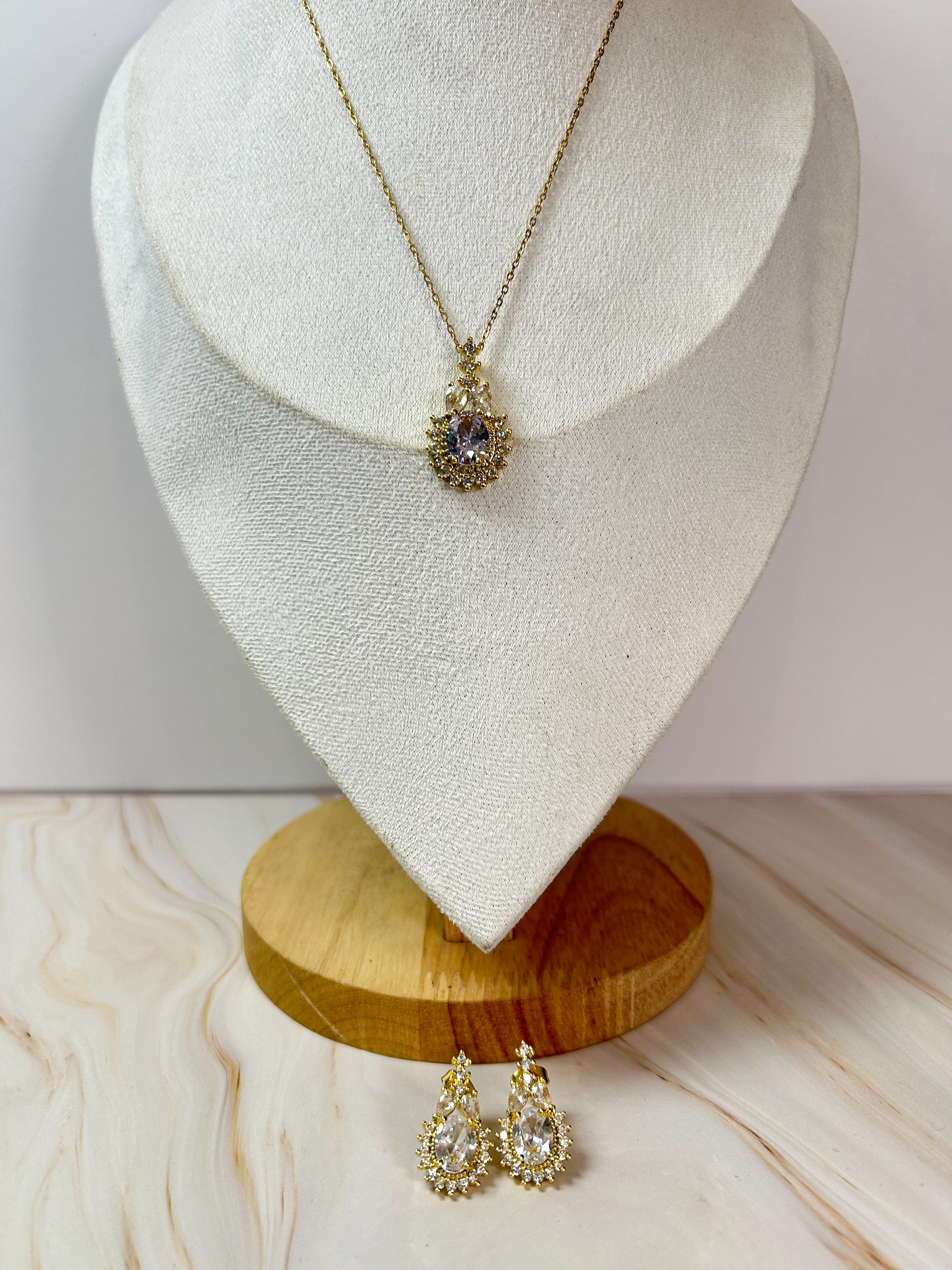 Hermoso set de collar y aretes en tono dorado con detalles de cristales , para tus looks brillantes y elegantes ✨👌🏻