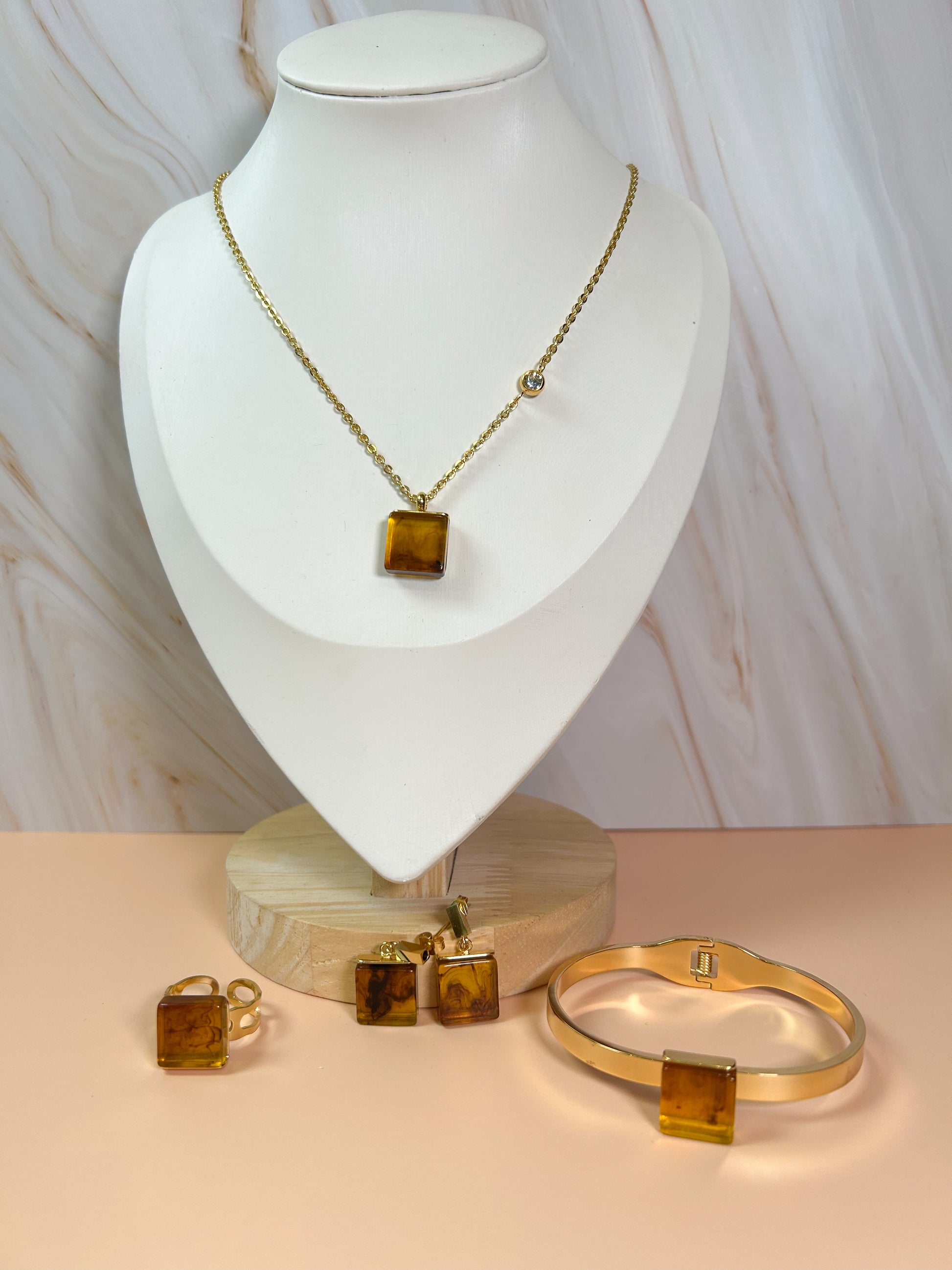 Hermoso set de collar , anillo,aretes y pulsera de mármol café ideal para tus looks brillantes y elegantes ✨👌🏻