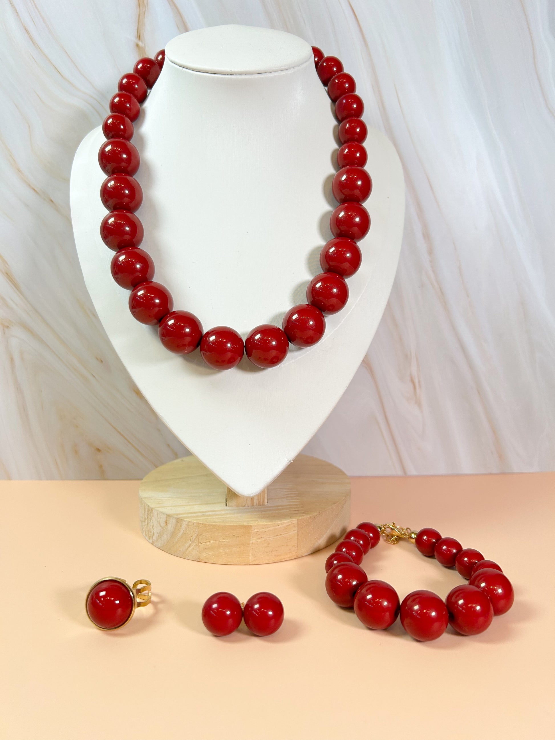 Hermoso set de collar , anillo,aretes y pulsera de perla color rojo ideal para tus looks brillantes y elegantes ✨👌🏻