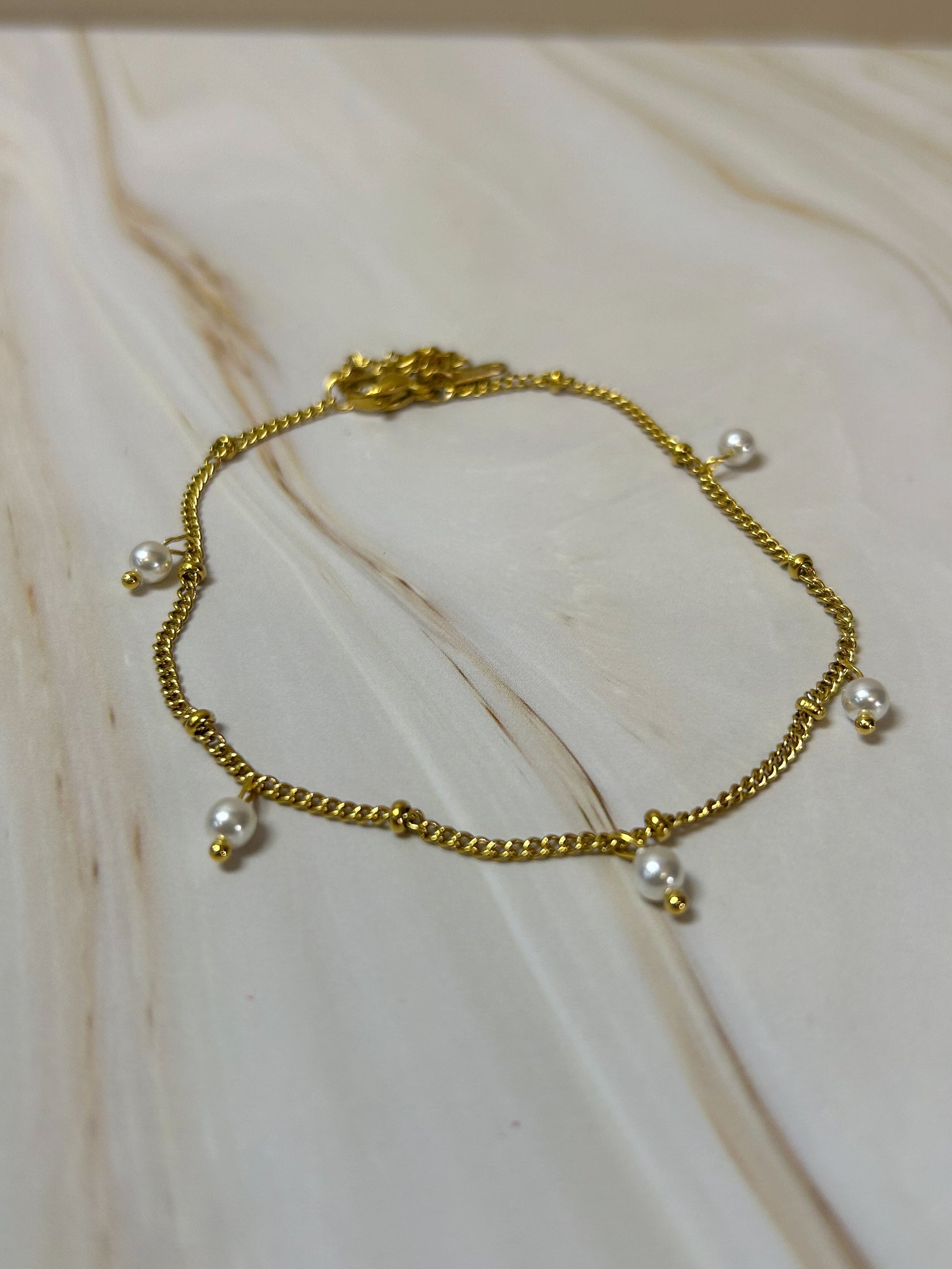tobillera en tono dorado con detalles de perlitas en color blanco ✨